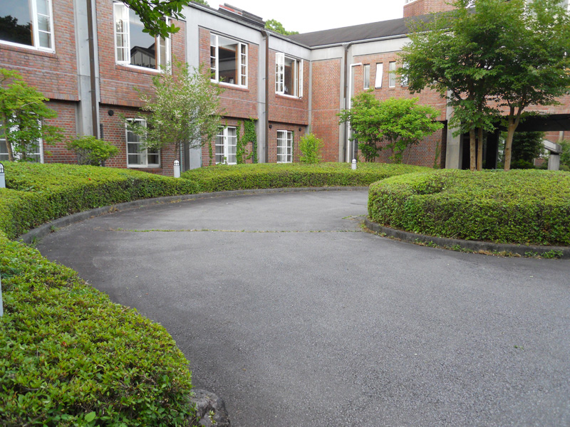 作業前、宿泊施設エントランスホール・ロータリー周辺かなりサツキ・オオムラ共に伸びています。サツキはこれからまだ、開花するのですがお客様とご協議のうえ剪定する事にしました。