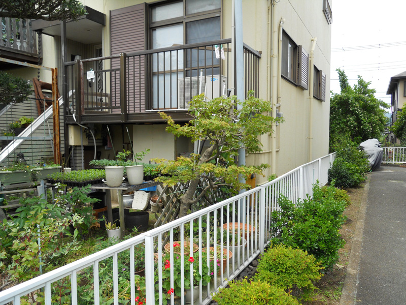 作業前、2本立ちの幹の一本が枯れています。伸びた枝がフェンスを越えてしまっています。枯れ枝も多くみられます。