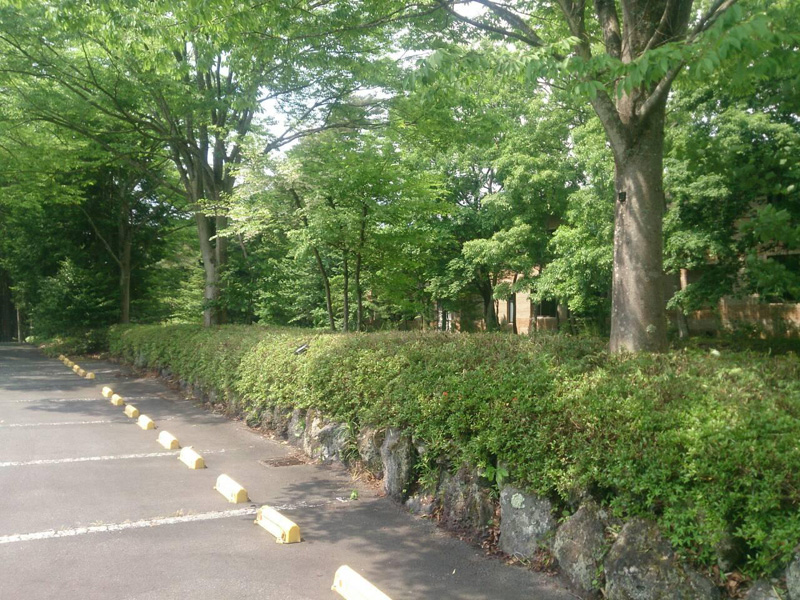 某保養所駐車場周辺低木剪定(クルメ・オオムラサキツツジ)(山梨県山中湖村)