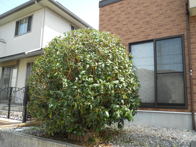 作業後、駐車場、二階まで届きそうな枝も無くなりひと回り小さくなりました。