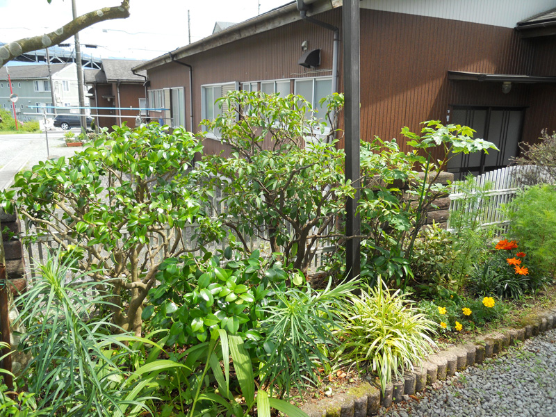 作業後、サザンカ・カルミア共に枝を抜き透かして小さくしました。