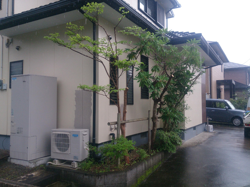 お客様の御要望で屋根より下げ駐車場側も出来るだけ枝をつめて欲しいとの事でした。