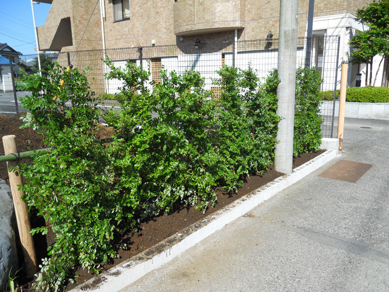 作業前、お客様と御相談しトキワマンサク(青葉白花)を植栽する事にしました。