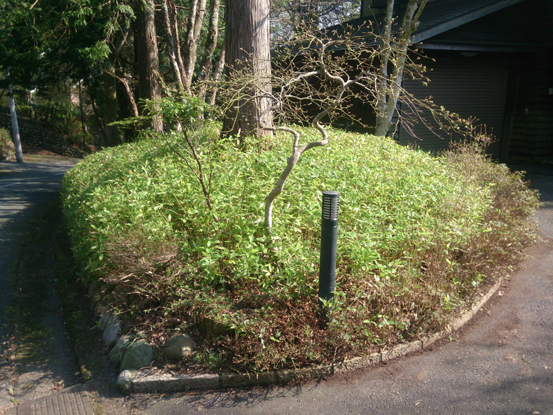 作業後、笹を短く切り隠れていたサツキやドウダンツツジ等が見えるようになりました。周りの植木を剪定し作業完了です。